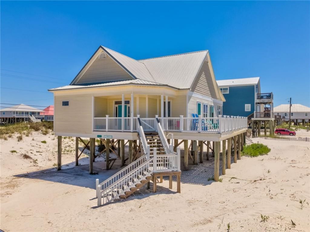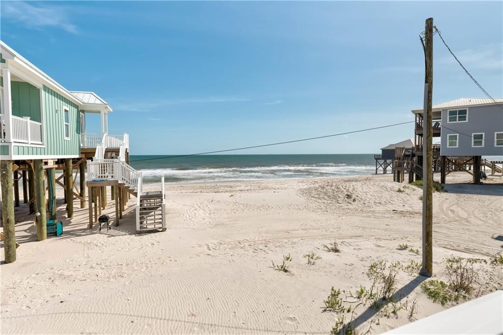 This stunning beach home on the West end of Dauphin Island offers the perfect coastal retreat. Listen to the waves and feel the tropical breezes in fabulous 'Island Breeze! Step out on to a large open deck facing the gulf and watch the dolphins play in your backyard. The covered side deck offers ample space for dining, playing games, and enjoying the shade with a view! The spacious open concept with 10 ft ceilings and crown molding throughout boasts a main living area, a well-appointed kitchen with brand new downdraft cooktop stove, granite countertops, plenty of cabinets, and new refrigerator and dishwasher. The kitchen flows seamlessly into a beautiful living room with a cozy electric log fireplace and an air hockey game for rainy days. A half bath in the entry hallway provides convenience for guests. Each bedroom is equipped with an ensuite bathroom, ensuring everyone has their own space. The master bedroom includes a soaker tub and a walk-in marble shower, along with an entrance to a private deck area for incredible views of the bay side of the island. The 2nd bedroom includes a king size bed, with the 3rd bedroom containing a kid friendly queen bed and full over full bunk beds. This home has been thoughtfully updated to include luxury vinyl plank flooring throughout, new ceiling fans, and coastal d?cor. With new HVAC heating and air system, there are no worries or added expenses. Outside, you will enjoy rarely seen trex decking with new white vinyl railings and balusters for low maintenance upkeep. Adding to the worry-free deck is an ample supply of Pollywood furniture with fun and beachy colors. The 3-way wrap around deck is gated for furry friends, adding to convenience and functionality. Underneath the home, there is protected parking for 2 cars, a grilling area, and a shell cleaning station. Boasting a solid rental history, with continuous bookings through end of Summer, Island Breeze provides an excellent source of revenue. Don't miss the fantastic opportunity for living, vacationing, or investing! 106 Serigny Court is your chance to own your piece of coastal luxury just steps from the gulf on Dauphin Island!! For added peace of mind, owner offers a 1 year comprehensive home warranty. Priced to sell, don't miss out on this one!